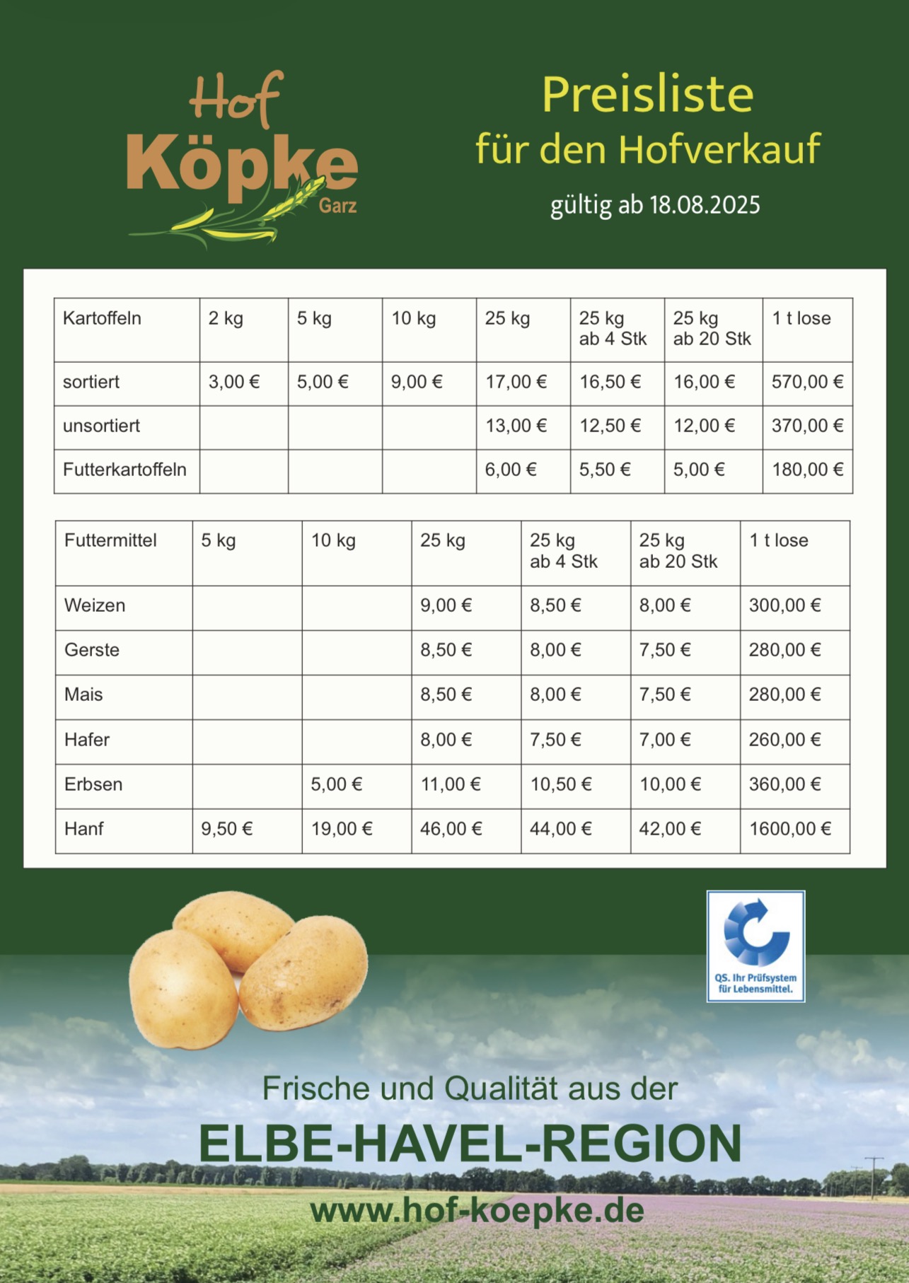 Wie bieten eine Auswahl an verschiedenen Speisekartoffeln und zum Beispiel Futtergetreiden.